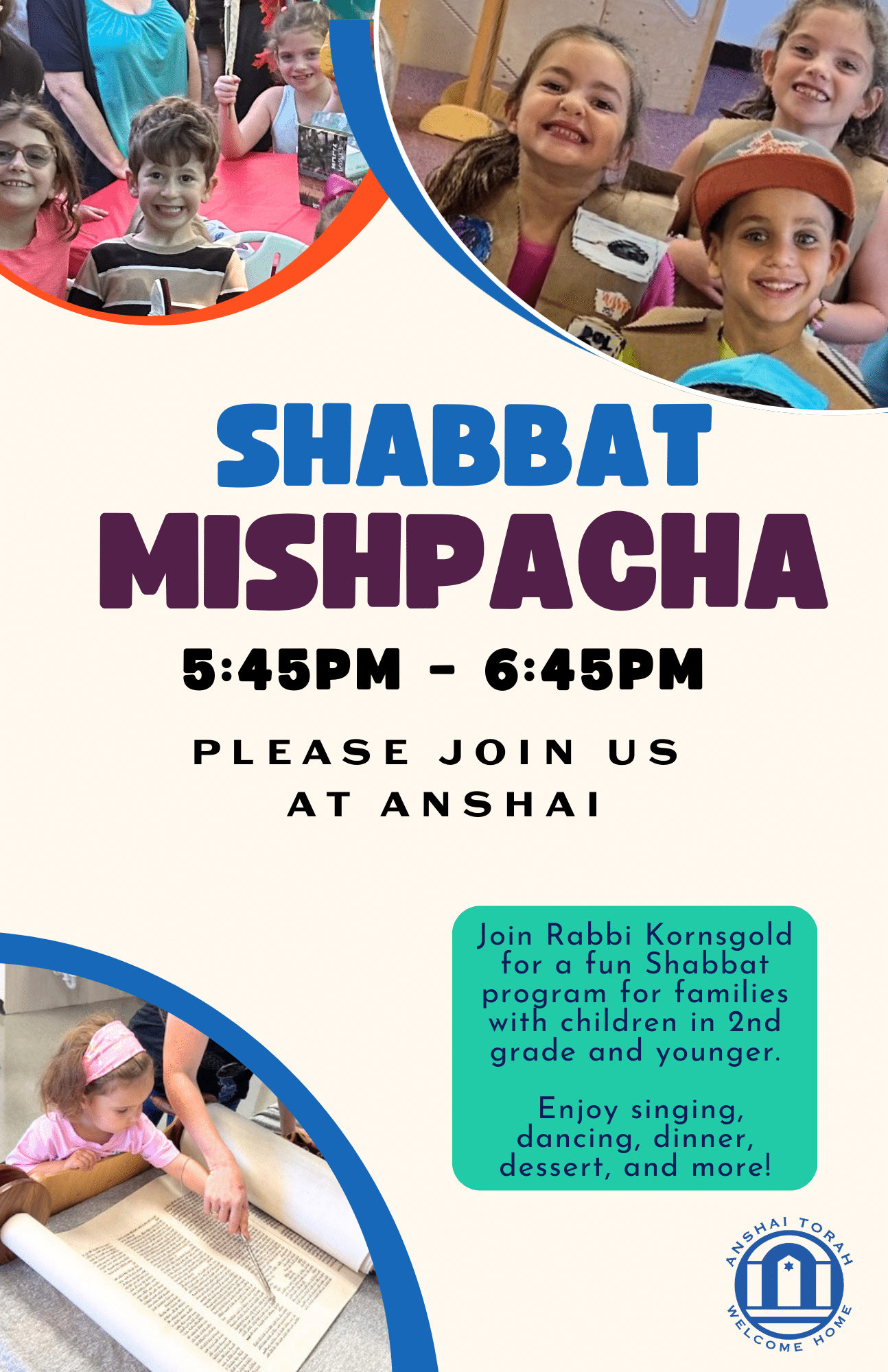 Join us for Shabbat Mishpacha on February 13th! Families with children in 2nd grade and younger are invited for a fun Shabbat program with Rabbi Kornsgold. Enjoy singing, dancing, dinner, dessert, and more. Create special memories together—RSVP today!