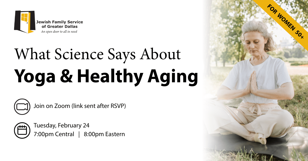 Join Jewish Family Service clinician, Beth Broodo for an educational webinar led by physician and integrative medicine expert Claudia Harsh, MD, as they discuss ancient foundations of yoga and the modern science studying its health benefits. During this session, Dr. Harsh will discuss the scientific research behind yoga’s impact on brain health, bone density, immune...